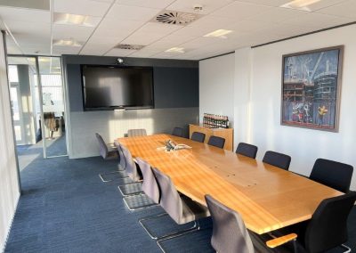 Raised access floors, suspended ceilings, 3 pipe fan coil heating cooling systems and a lift.